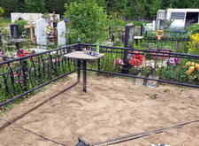На этом участке мы работали с могилой, на которой сравнительно недавно произошло дозахоронение – земляной холм даже не успел как следует осесть и разойтись. На территории участка уже находился гранитный памятник специфической формы, копию которого нам и предстояло установить.